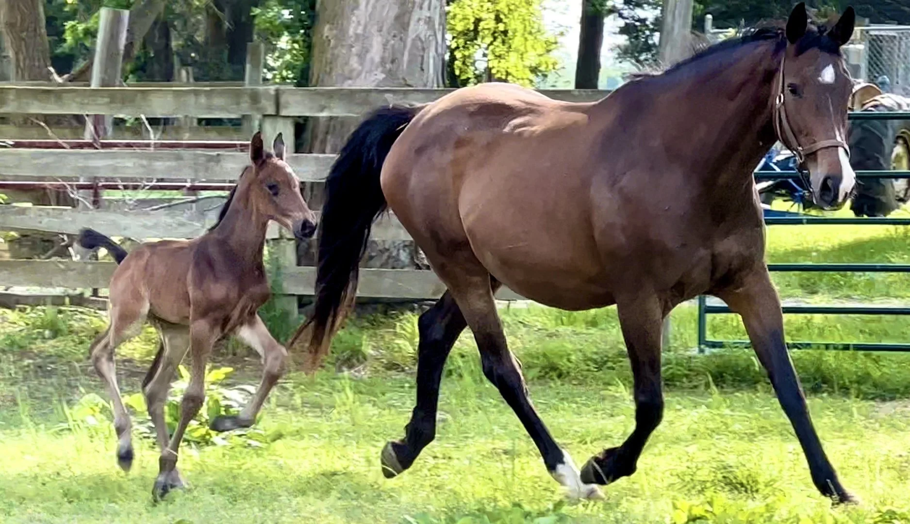 She produces versatile offspring with the first two being amateur friendly horses competing in dressage and Derby hunters. Her next was a full tb who ended his career at the end of 2022 after earning over $57,000. He was sold to an adult amateur at a premier h/j. Barn. We can’t wait to see what the younger offspring do!